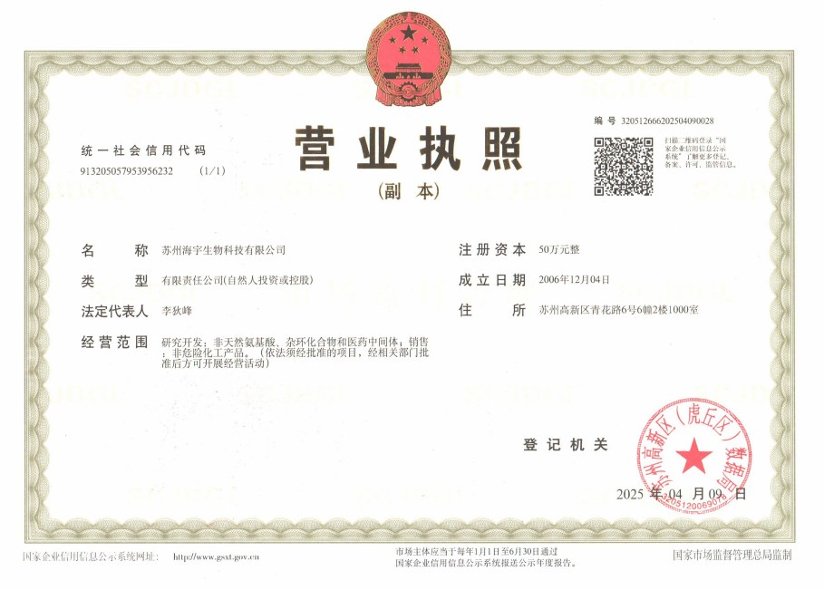 Suzhou Haiyu Biochem Industrial CO.,LTD and Suzhou Haiyu Biological Technology CO., LTD are hi-tech enterprise specializing in the research, development, manufacturing such as protecting amino acids, amino acid derivatives and chiral compounds, etc. Now, Our products are well sold in EU, USA, Japan and Korea, etc. Sticking to such tenet of "High starting point, high efficiency, high returns", we commit ourselves to developing and manufacturing new pharmaceutical products. Relying on unique organic synthetic technology and leading management idea, we are string to offer customers excellent quality and excellent service in good price.